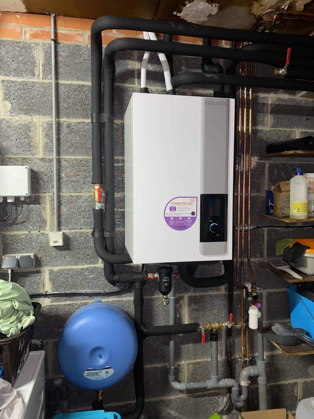 - Installation d'une pompe à chaleur air/eau de marque ATLANTIC type EXTANSA S 8 d'une puissance de 7.5 KW