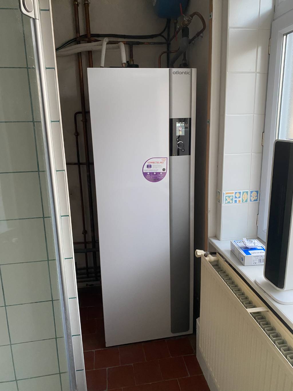 - Installation d'une pompe à chaleur air/eau Atlantic type ALFEA EXCELLIA S DUO 14 avec un ballon d'eau chaude intégré de 190 litres