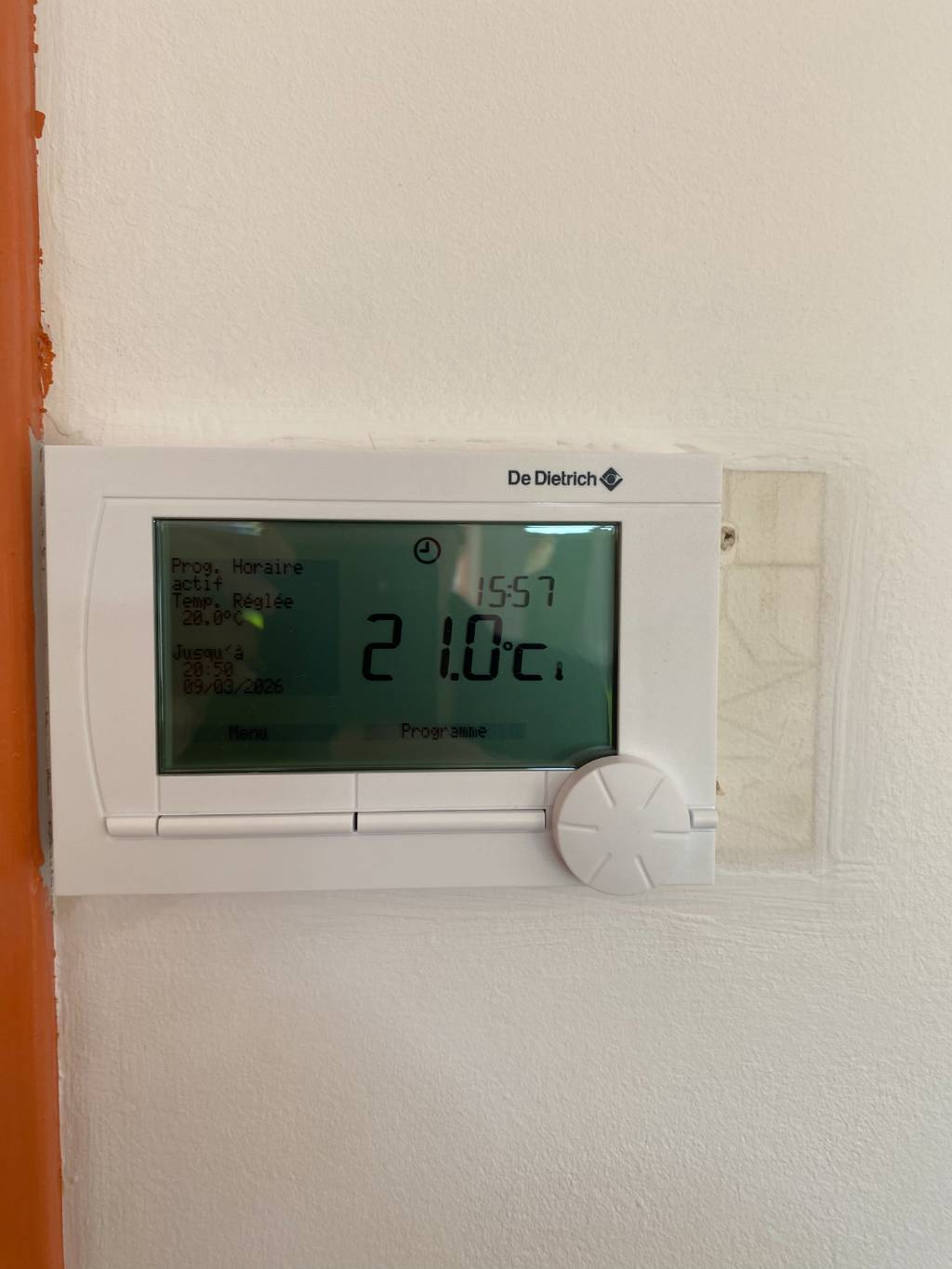 - Installation d'une sonde extérieure et de la commande d'ambiance DE DIETRICH type AD304 à la place de l'ancien thermostat